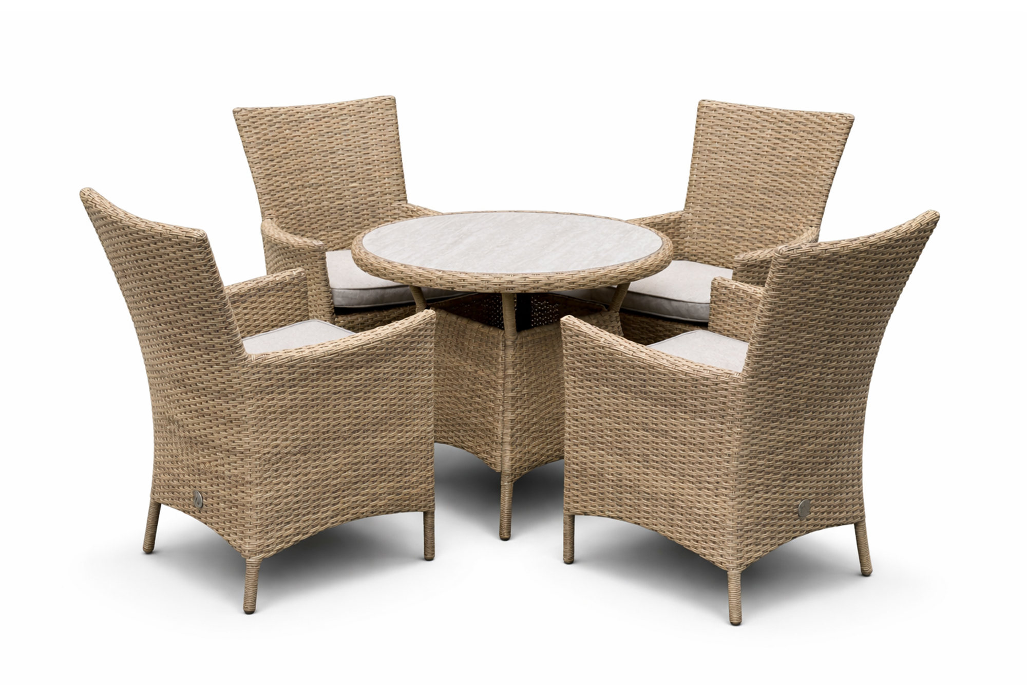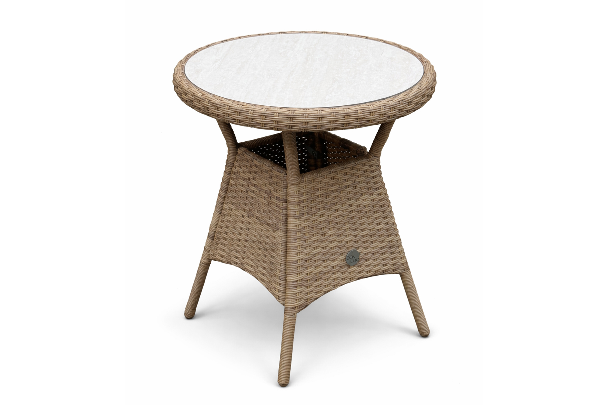 Det fine sidebordet fra Naples passer godt mellom to stoler fra samme serie. Lag et hyggelig avslapningsområde på uteplassen din. Bordet har en ramme i vedlikeholdsfri aluminium og kunstrotting. Bordplaten er laget i herdet glass, som også er vedlikeholdsfri.