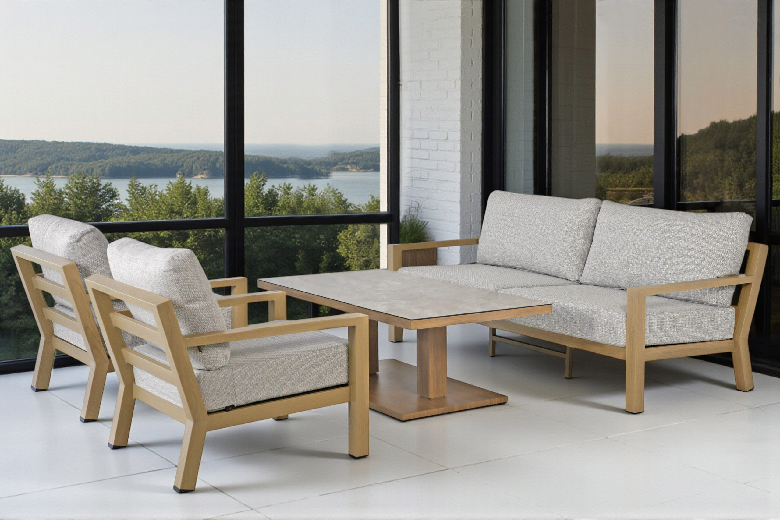 Stanford midtmodul og hjørnemodul er laget i vedlikeholdsfri aluminium med tykke og komfortable puter i enten allværsstoffet oaktekstil eller i olefin som er godt egnet til utendørs bruk. Midtmodulen og hjørnemodulen kan brukes som en liten sofa eller brukes sammen med enda flere moduler fra samme serie.