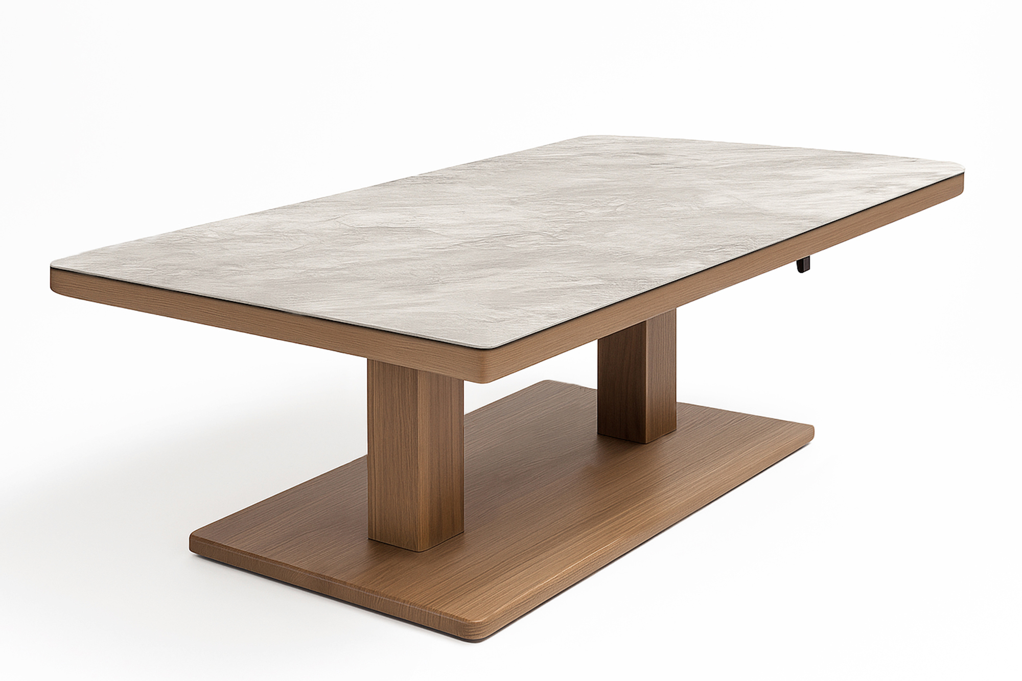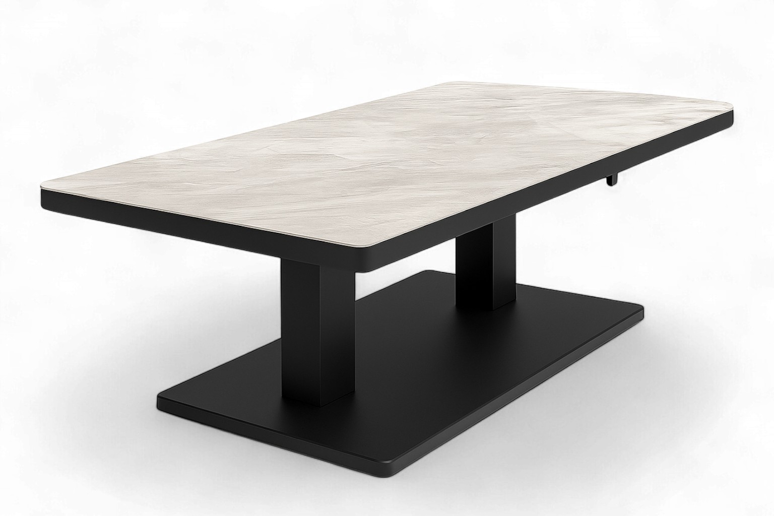 Heve/senke bord i nydelig rotting som gir et organisk og lunt design. Designet er kraftig men med myke linjer som gir et elegant design. Bordet kan justeres opp eller ned i høyde og kan dermed brukes bæde til mæltid og avslapning. Bordplaten er laget i keramisk glass med en nydelig farge og struktur.