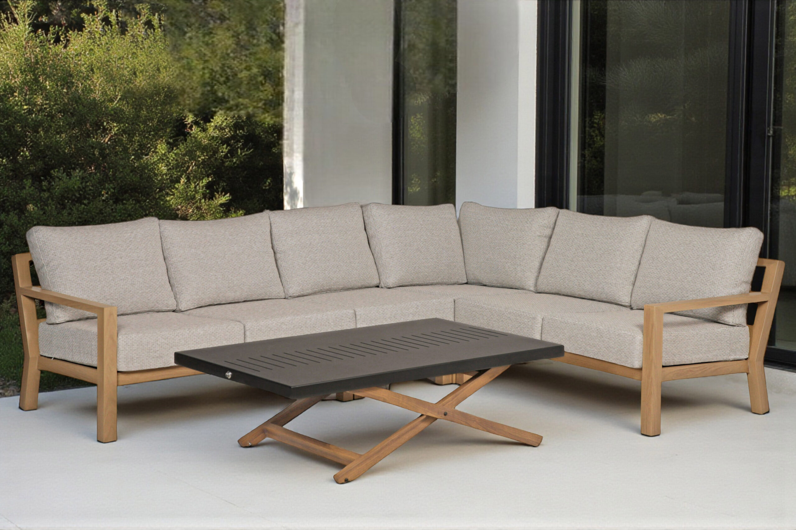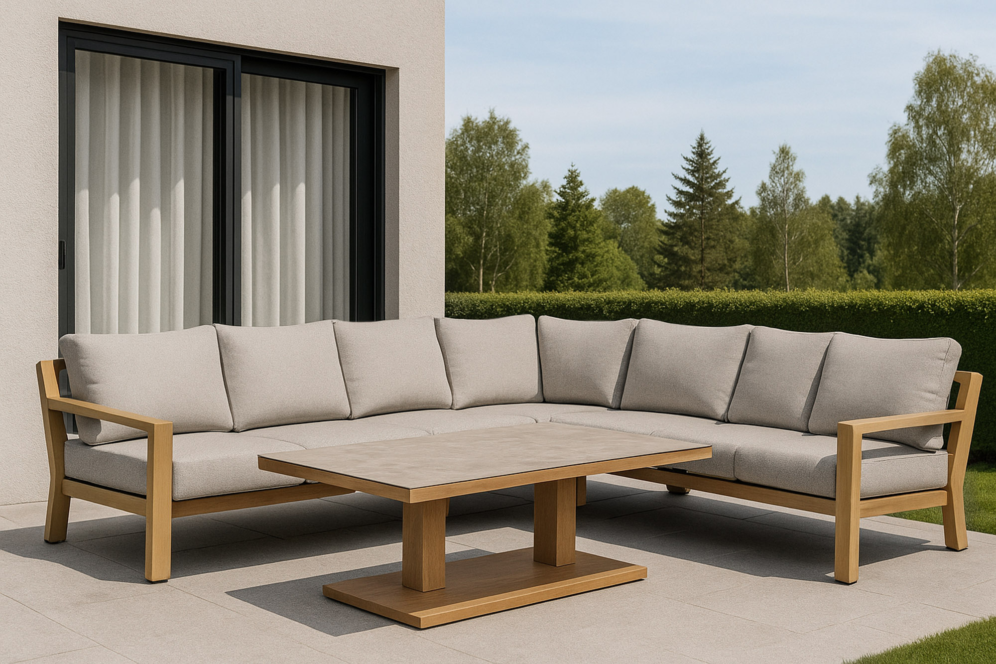 Store hjørnegrupper. Det kan være vanskelig å fylle en stor uteplass. Med en stor utesofa kan man skape et sofistikert og innbydende uttrykk. Her kan du finne en stor sofagruppe som har plass til hele familien. Velg en utesofa som passer til din uteplass, enten i tidløs rotting eller moderne aluminium. En hjørnegruppe kan brukes som romavdeler for å skape flere soner i uteplassen din, som for eksempel en spiseplass eller et lounge-området. Nyt sommeren i kvalitetsmøbler fra Oakland.